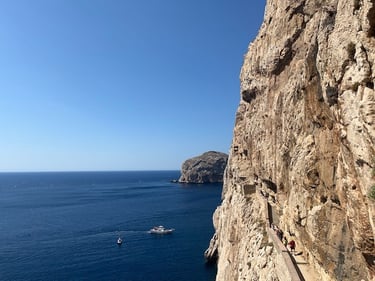 1️⃣ Łodzią z Alghero – najwygodniejszy sposób, szczególnie jeśli chcesz uniknąć schodzenia po setkach schodów. Rejs trwa ok. 20-25 minut, a koszt biletu w dwie strony to ok. 15-20 EUR (zależnie od sezonu).