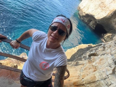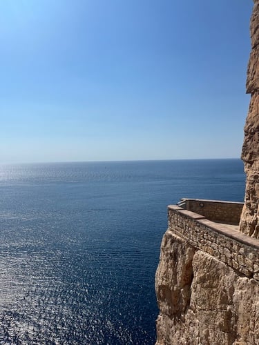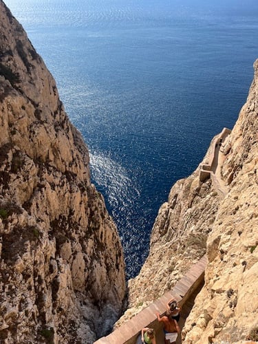 2️⃣ Schodami Escala del Cabirol – czyli „Schodami Kozicy”. To 654 stopnie wykute w klifie, prowadzące wprost do wejścia do groty. Widoki po drodze są niesamowite, ale trzeba pamiętać, że zejście jest łatwiejsze niż powrót pod górę, szczególnie w upalny dzień.