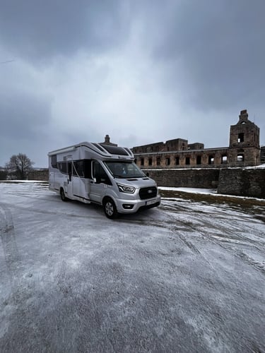 Krzyżtopór zimą kamperem. Ślisko, zimno i… dokładnie tak miało być