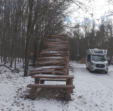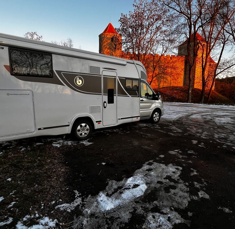 Sylwestra spędziłyśmy w Lednicach, na wcześniej zarezerwowanym stellplatzu. Plan to dla nas punkt wyjścia, nie sztywna lista zadań – przy zimowych warunkach i późnym dojeździe chciałyśmy mieć spokojny start, bez stresu i szukania miejsca na ostatnią chwilę.